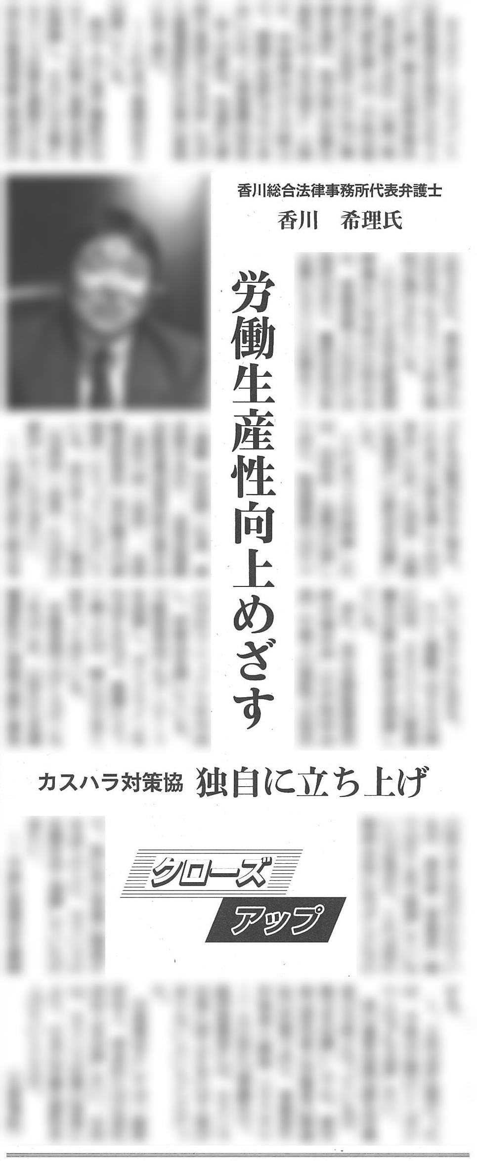 お知らせ2025.11.13【メディア掲載情報】『物流ニッポン』(2025年9月26日付) ツイート シェア はてブ 送る Pocket『物流ニッポン』(2025年9月26日付)で香川希理代表弁護士が紹介されました。